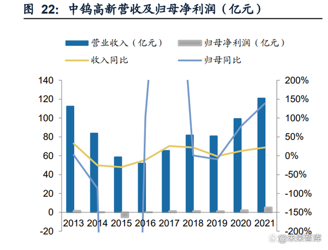 2021年公司實(shí)現(xiàn)營業(yè)收入318.52億元,同比+67.96%;實(shí)現(xiàn)歸母凈利潤11.81 億元, 同比+92.24%。其中,鎢鉬等有色金屬業(yè)務(wù)實(shí)現(xiàn)營收109.58 億元,同比+45.41%, 實(shí)現(xiàn)利潤總額14億元,同比+74.57%。21年毛利率16.24%,同比-2.09%;凈利率 3.71%,同比+0.47%。鎢鉬等有色金屬業(yè)務(wù)的毛利率較高,21年為26.76%。